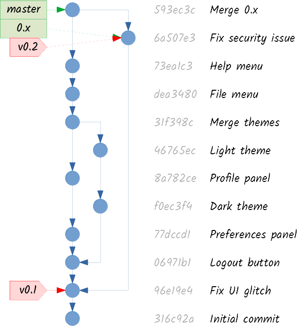 In my previous post, I said that a GUI client should show the commit graph, among other things, in its main interface. But, what does this graph represent? Let’s have a look at how Git organizes your changes.